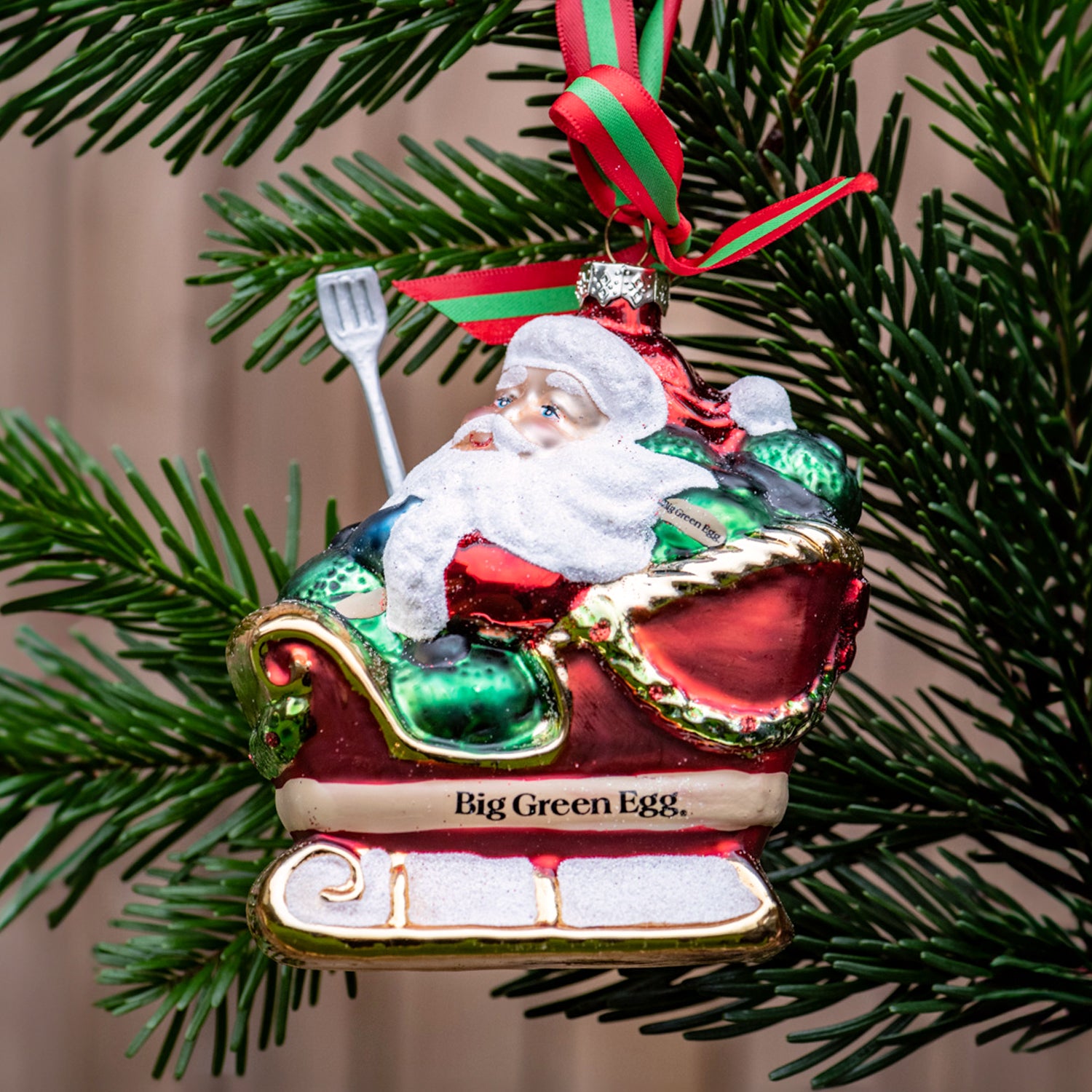 Add a bit of fun to your holiday decor with the Big Green Egg Limited Edition Glass Santa's Sleigh Ornament. This festive, collectible glass ornament will be a jolly addition to any holiday tree. Makes the perfect gift for all of your favorite EGGheads!
