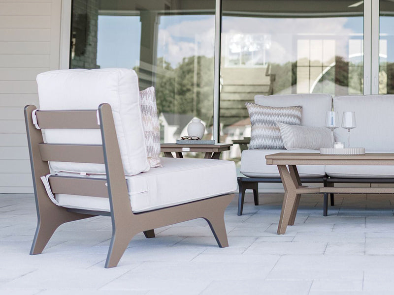 Beautifully designed, solidly built, and durable, this furniture is made from the highest-grade poly lumber and weather-resistant hardware.
