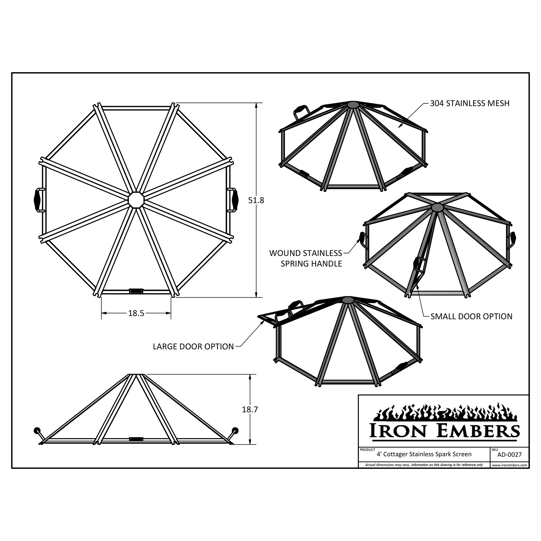 The 4' Cottager Spark Screen is an optional accessory that offers a complete look and additional safety. It’s built from 1/8” thick steel and stainless-steel mesh before being coated in our high-heat enamel paint.