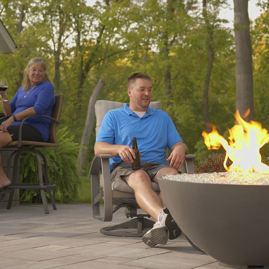 The Cove Edge 42" Round Gas Fire Pit Bowl in Midnight Mist turns flame into art. Handcrafted from natural Supercast™ concrete and designed with a bold, sculptural edge, this fire feature isn’t just something you light—it’s something you gather around, admire, and remember.