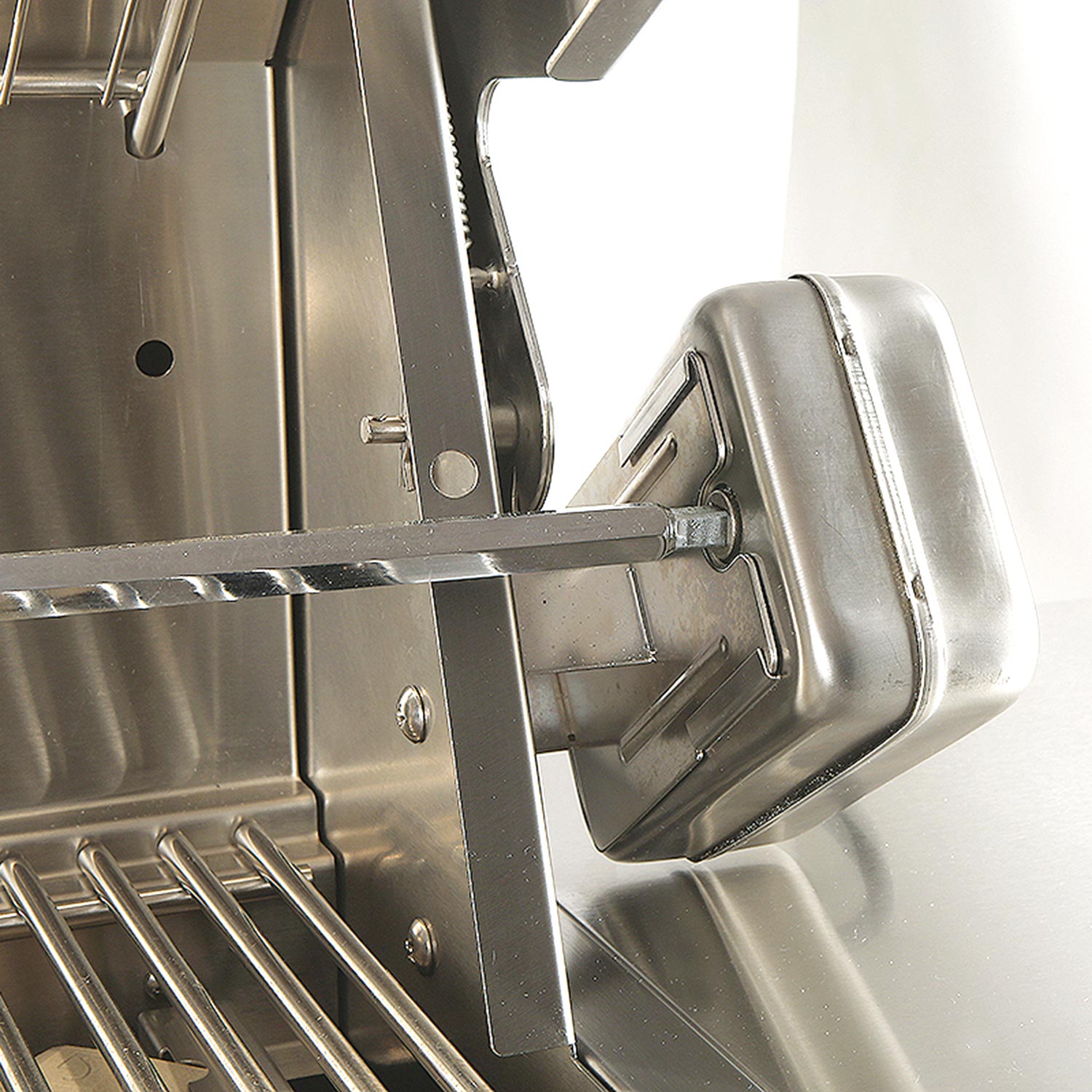 A reliable startup is guaranteed by the powerful electronic ignition system, protected by heat-resistant encased wiring. The heavy-duty rotisserie system, with a 15,000 BTU ceramic rear infrared burner, adds versatility and precision to your grilling experience.