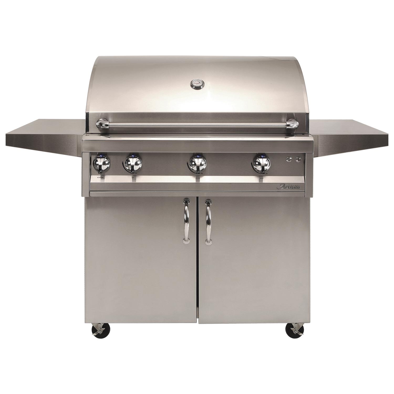 Complete with a stainless steel cart featuring side shelves, dual access door storage, and locking caster wheels, this grill provides both functionality and mobility. Enjoy the premium features and craftsmanship of the Artisan Professional Series for an exceptional grilling experience.