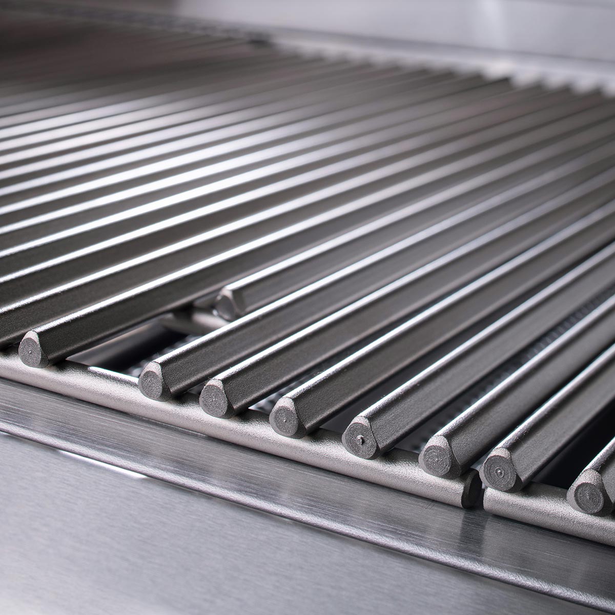 - Triangular Grill Grates - Thick cast stainless steel cooking grids feature a triangular design to create restaurant quality sear marks and retain heat exceptionally well