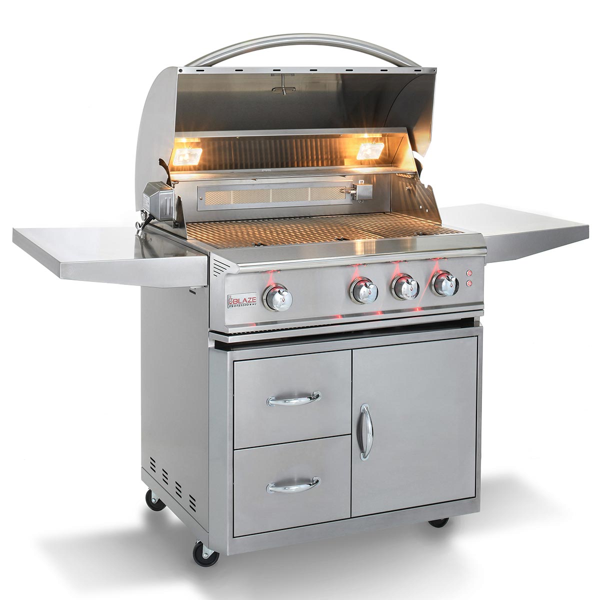 Blaze PRO 34" 3-Burner Built-In Gas Grill w/ Grill Cart
