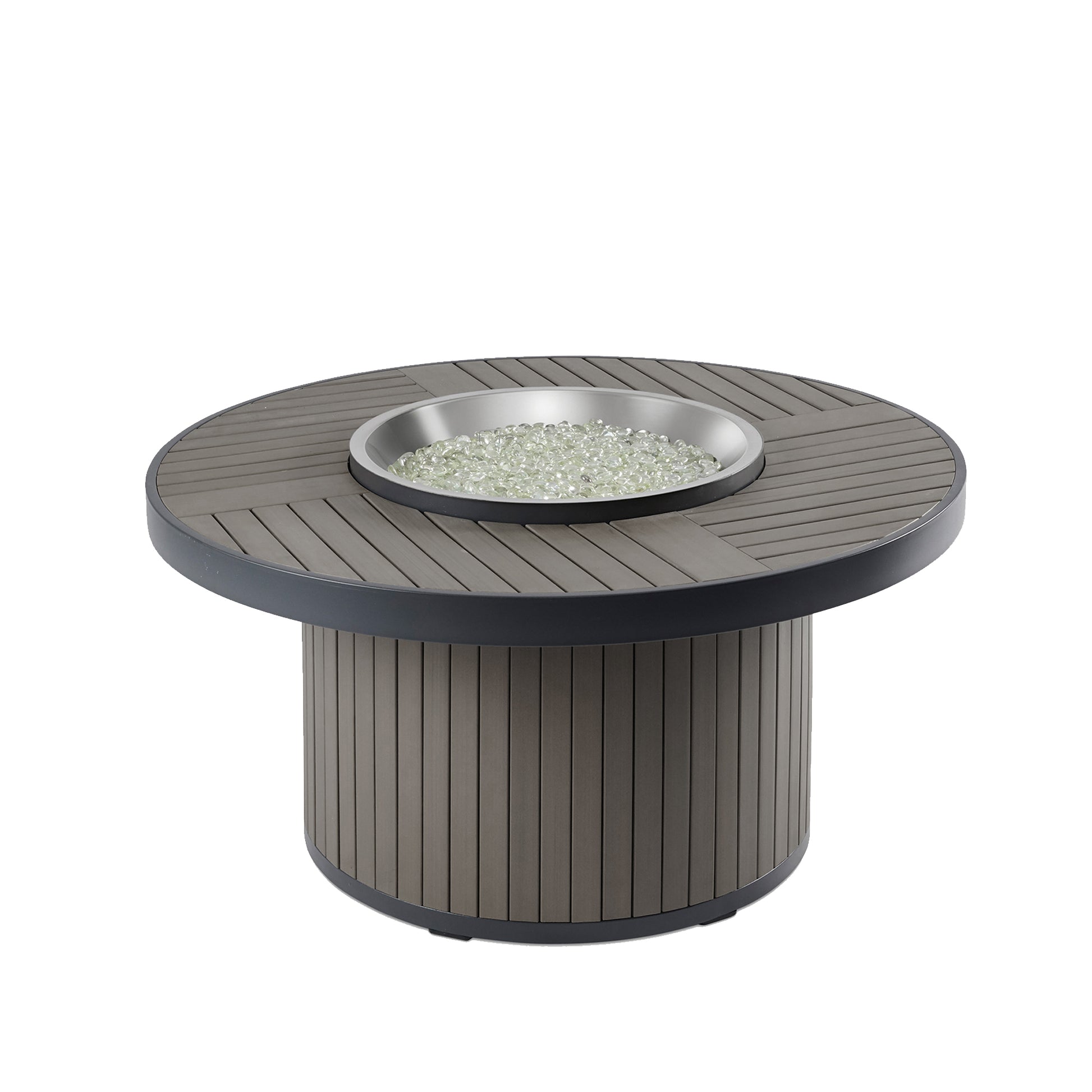 - Elevated 20” Round Crystal Fire® Plus burner with clear tempered fire glass gems – 55,000 BTUs (LP/NG)