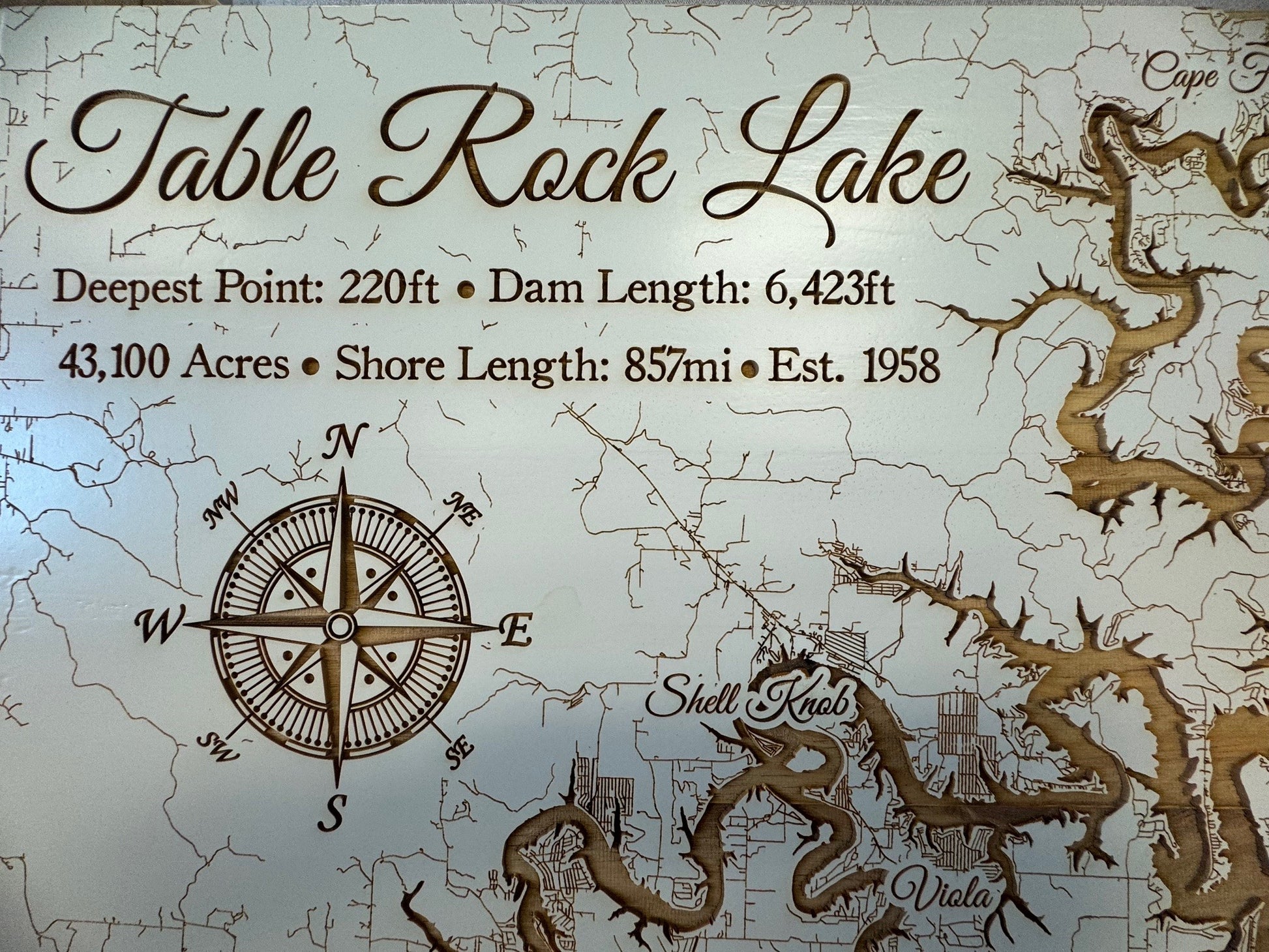 Discover the artistry of Fire & Pine with our meticulously crafted Engraved Wood Map of Table Rock Lake.