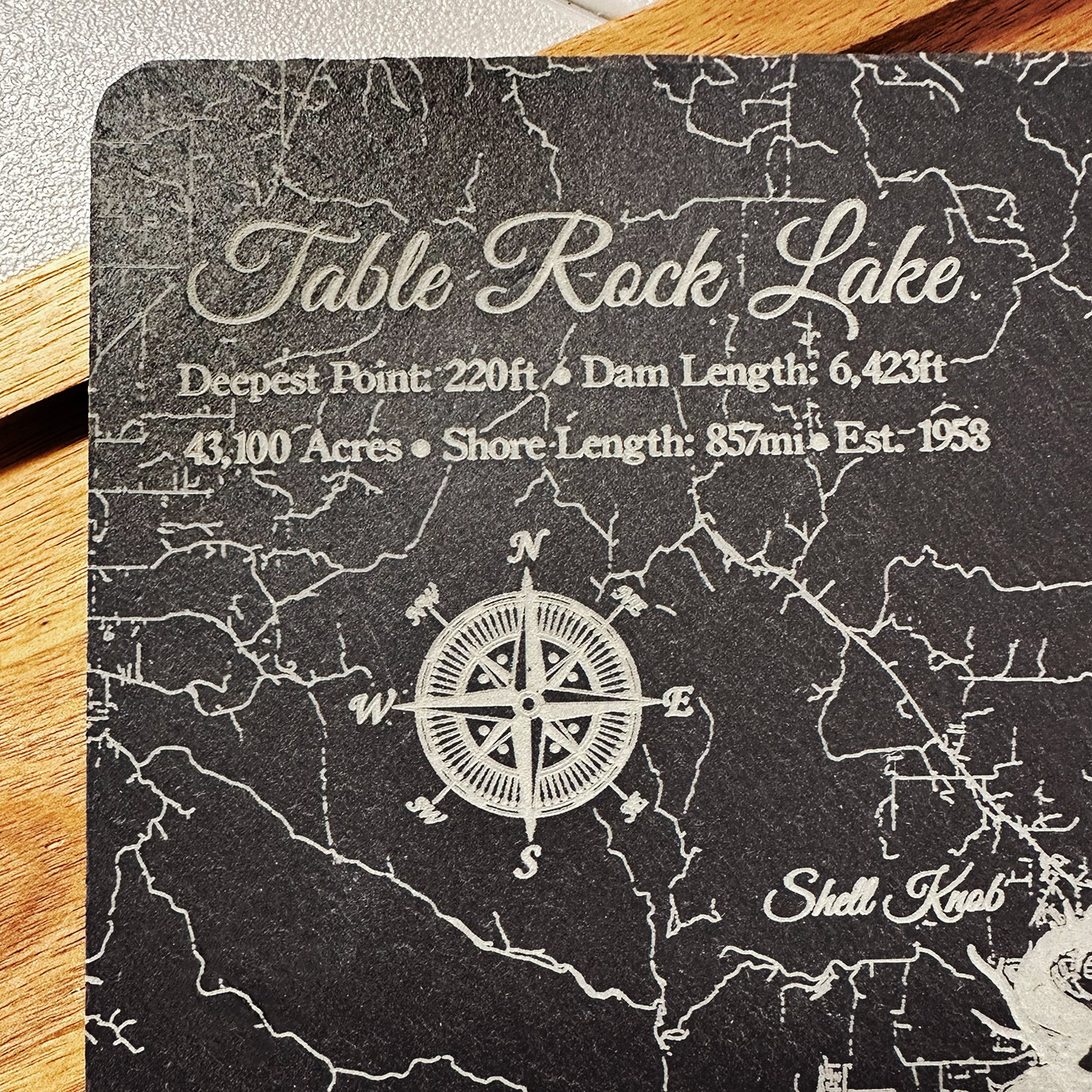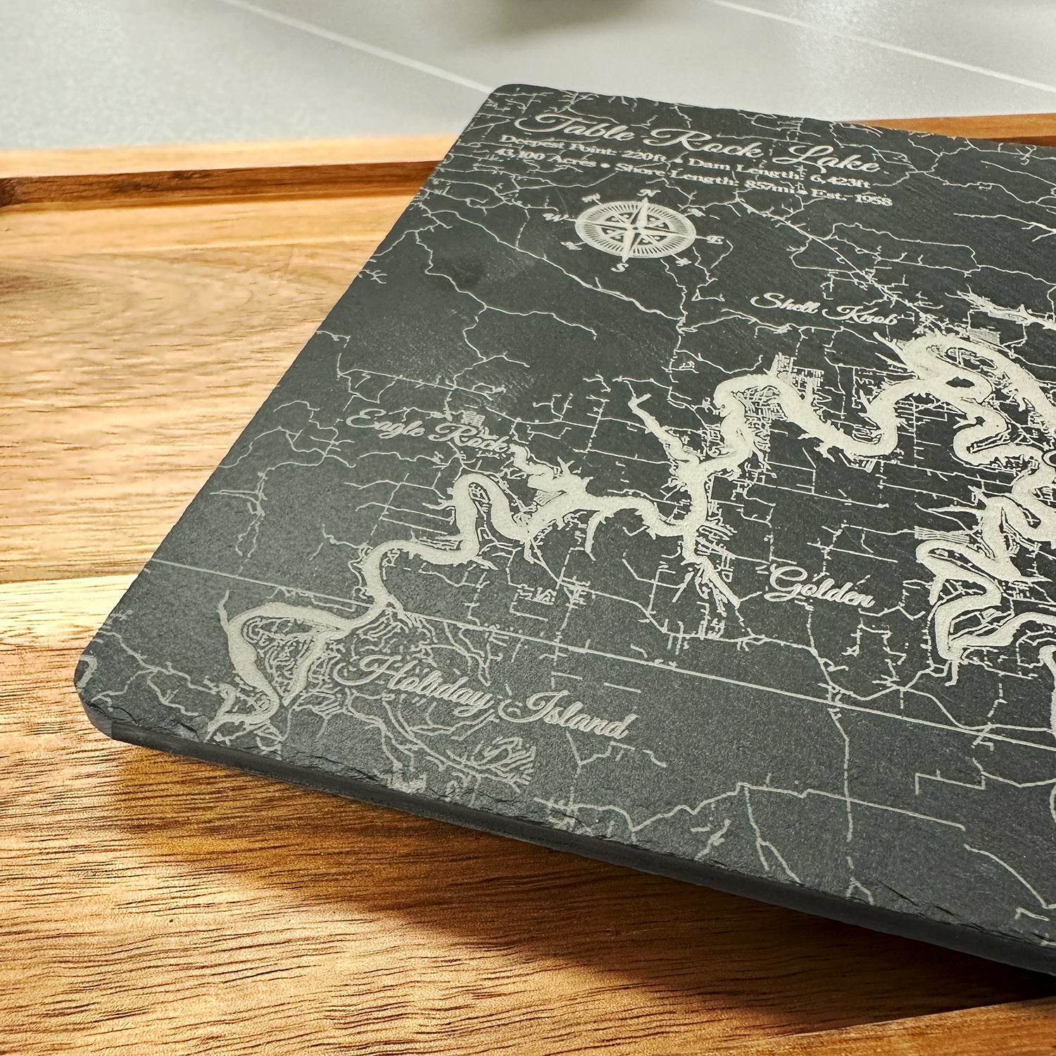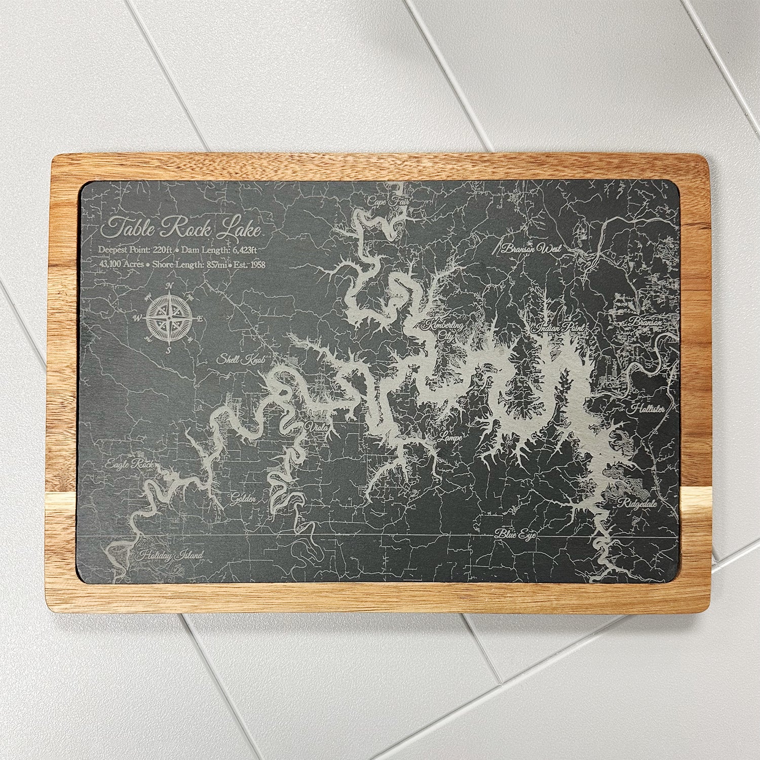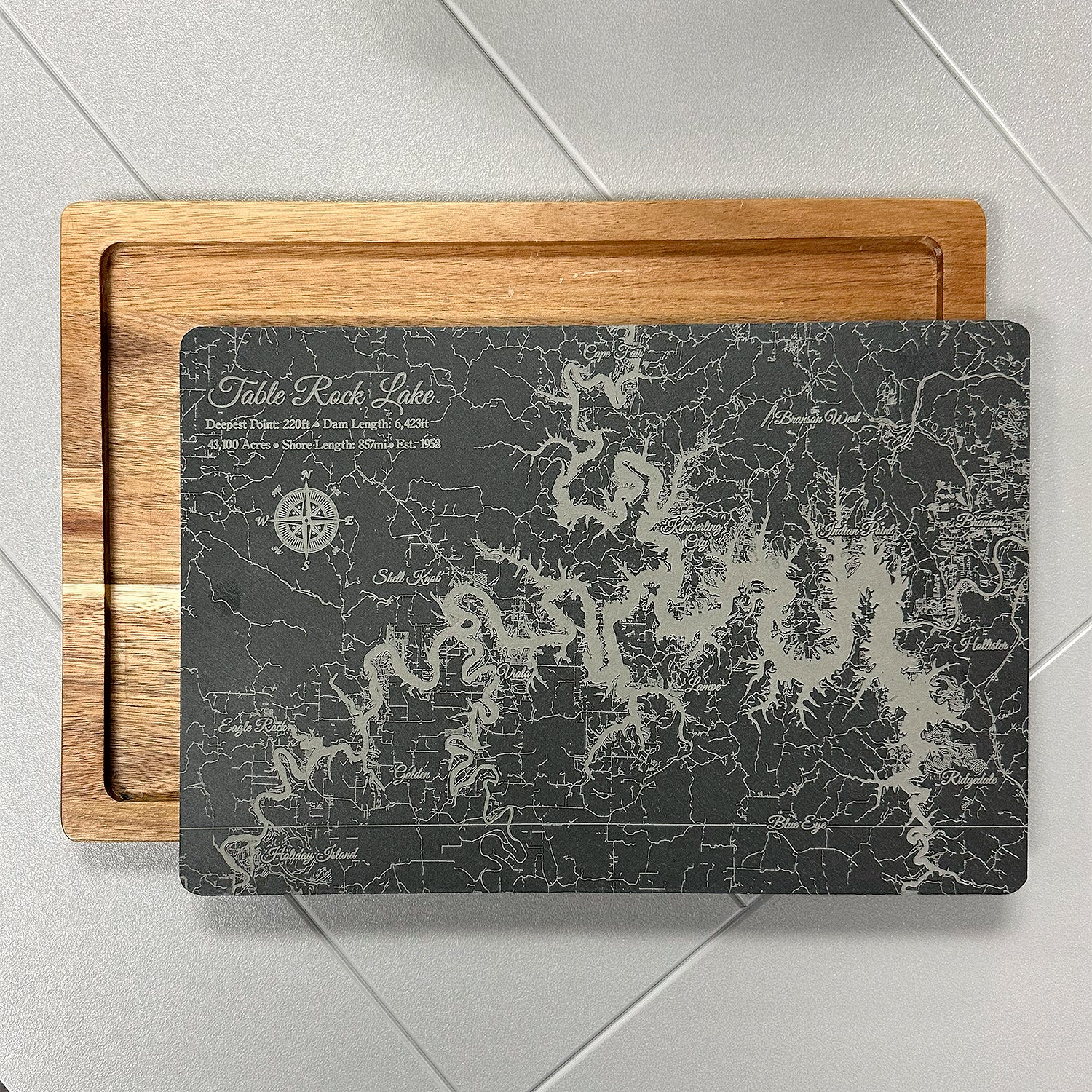 Fire & Pine Charcuterie Board Slate/Acacia Wood 9" X 13" (Etched Table Rock Lake)