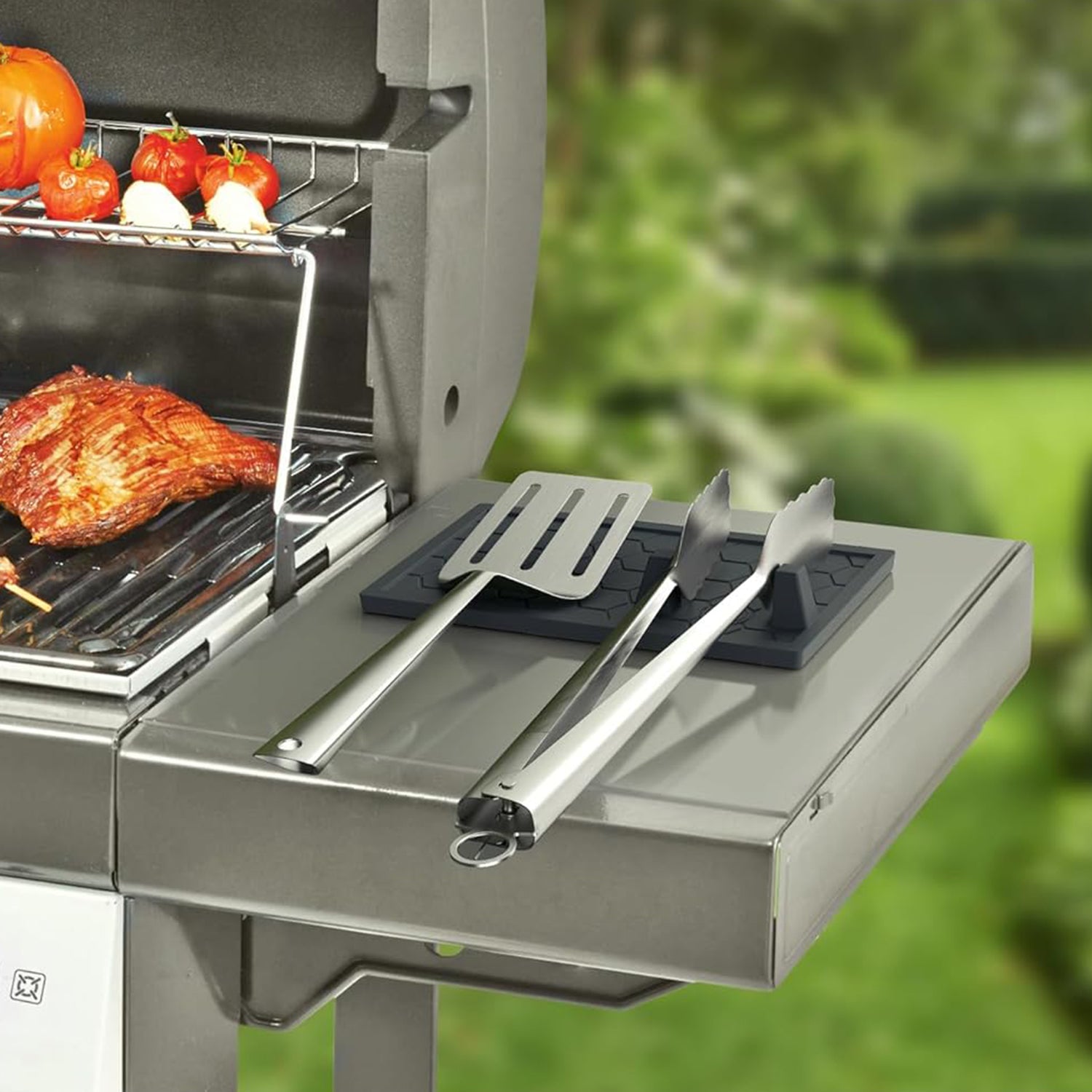 - Non-Slip Design: Grips your grill’s side table, preventing tools from sliding or falling.