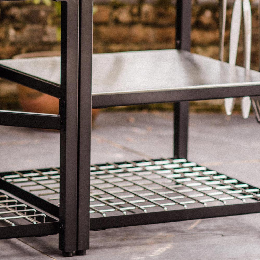All inserts are standardized – the same insert will fit into the top frame and lower shelf frame so you can build an outdoor workspace tailored for your particular size and style.