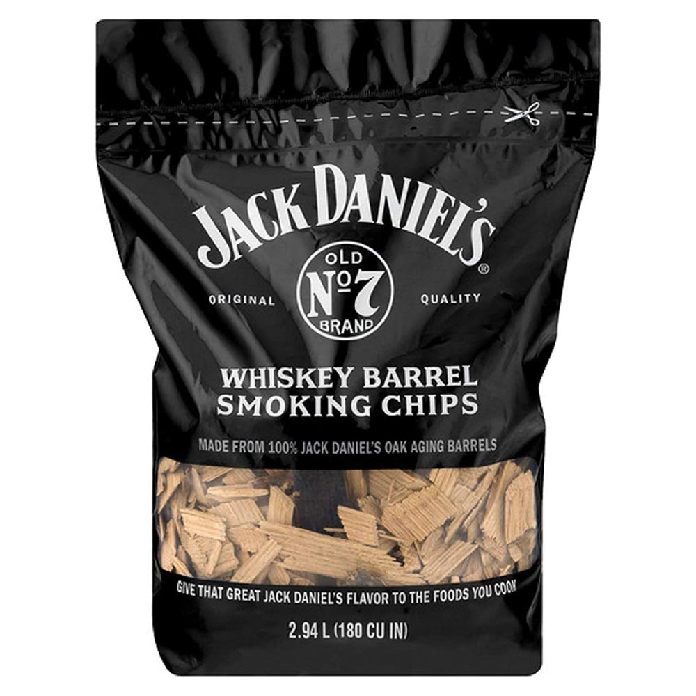 - Wood chips for smoking made from real Jack Daniel’s Old No. 7 Brand whiskey barrels