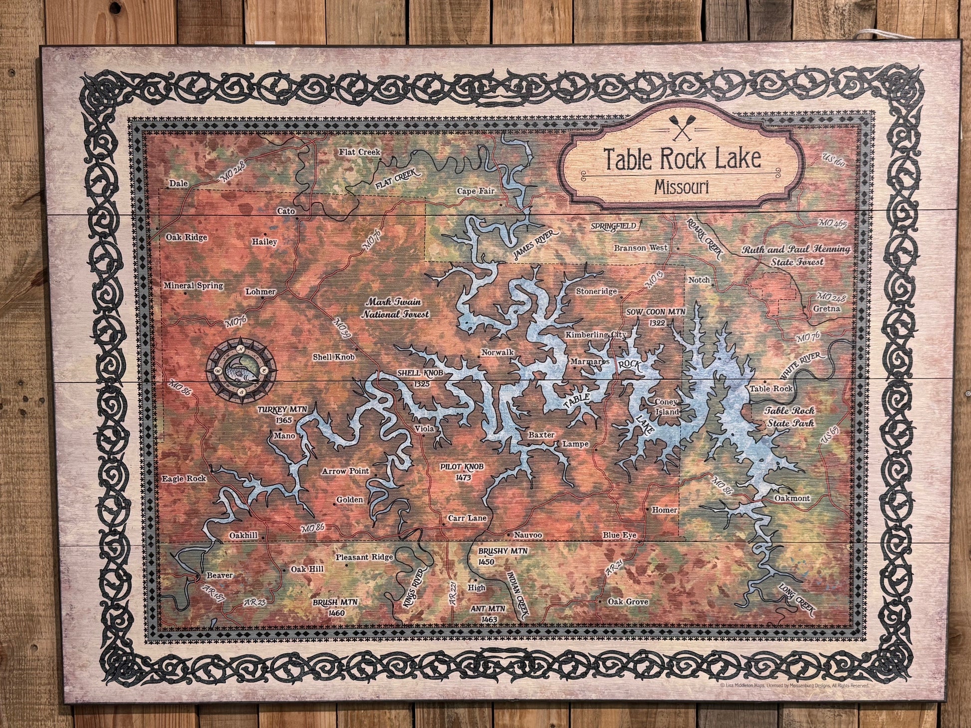 Meissenburg 28" x 38" Historic Table Rock Lake Missouri Vintage Map (Wood)