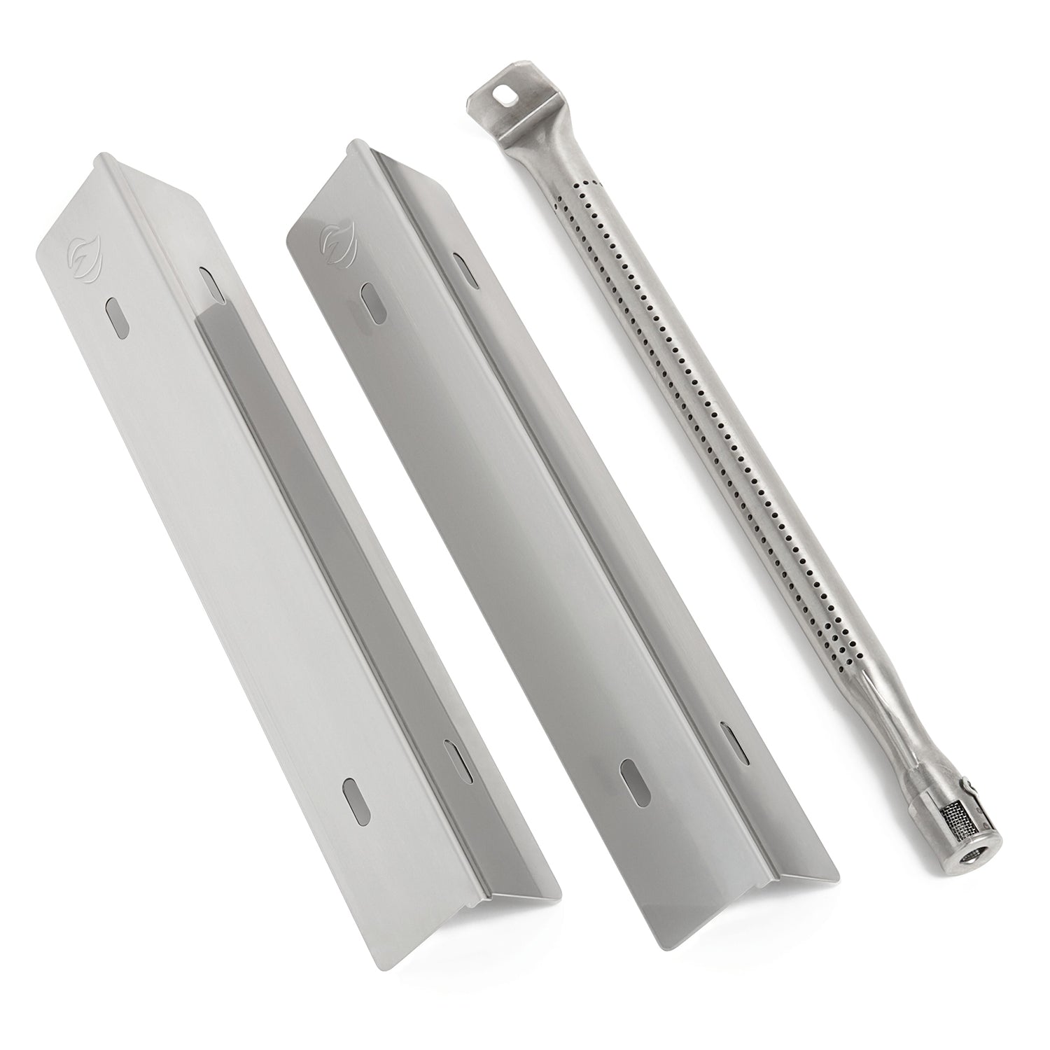 Burner and sear plate replacement kit for Rogue® Series and Prestige® 500 Gas Grills. Contains one stainless steel tube burner and two stainless steel sear plates. Use this to replace a worn burner and extend the life of your BBQ.