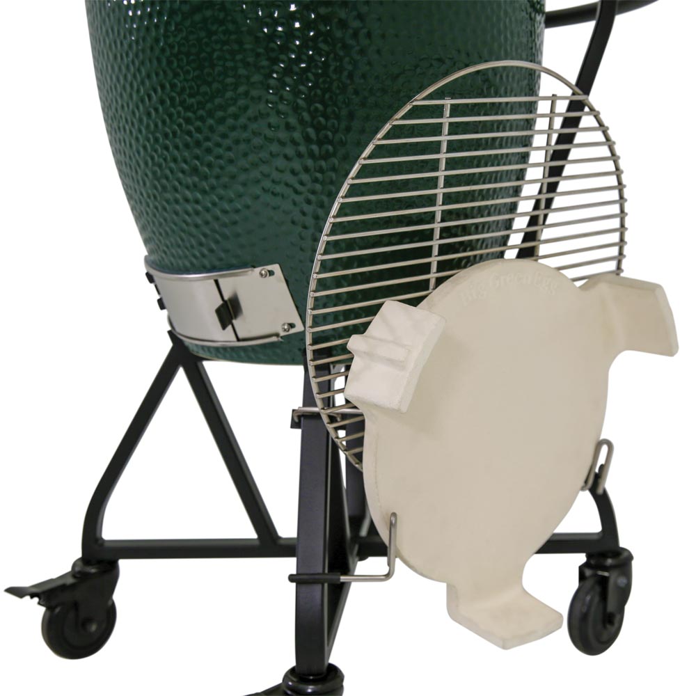 Where to put your convEGGtor when not using it? In the new Big Green Egg Nest Utility Rack, of course! You can attach this temporary storage solution to your EGG Nest or intEGGrated Nest+Handler. And it has more than enough arm strength to hang your Baking Stone from. A powerful specimen.