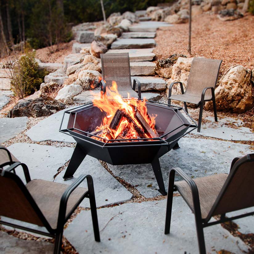 The raised fire bowl radiates heat down onto your feet and water drainage/ airflow slots in the floor keep your fire pit clear of rainwater. The rod rings on the Cottager let you place cast iron pans on the rim for cooking or as a footrest while the fire's burning. The Cottager also comes standard with an Attachment Adapter, which lets you connect a BBQ grill quickly and easily.