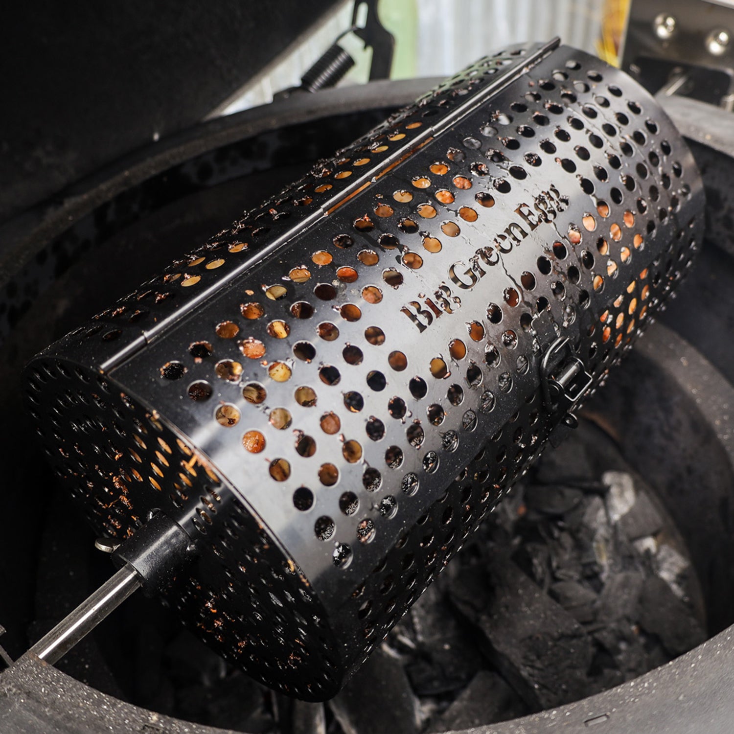 The Tumbler Basket for the Big Green Egg Rotisserie turns your EGG into a rolling rotisserie drum that crisps, caramelizes, and cooks your favorite bites without lifting a finger. Wings? Done. Shrimp? Sizzled. Veggies? Roasted to perfection.