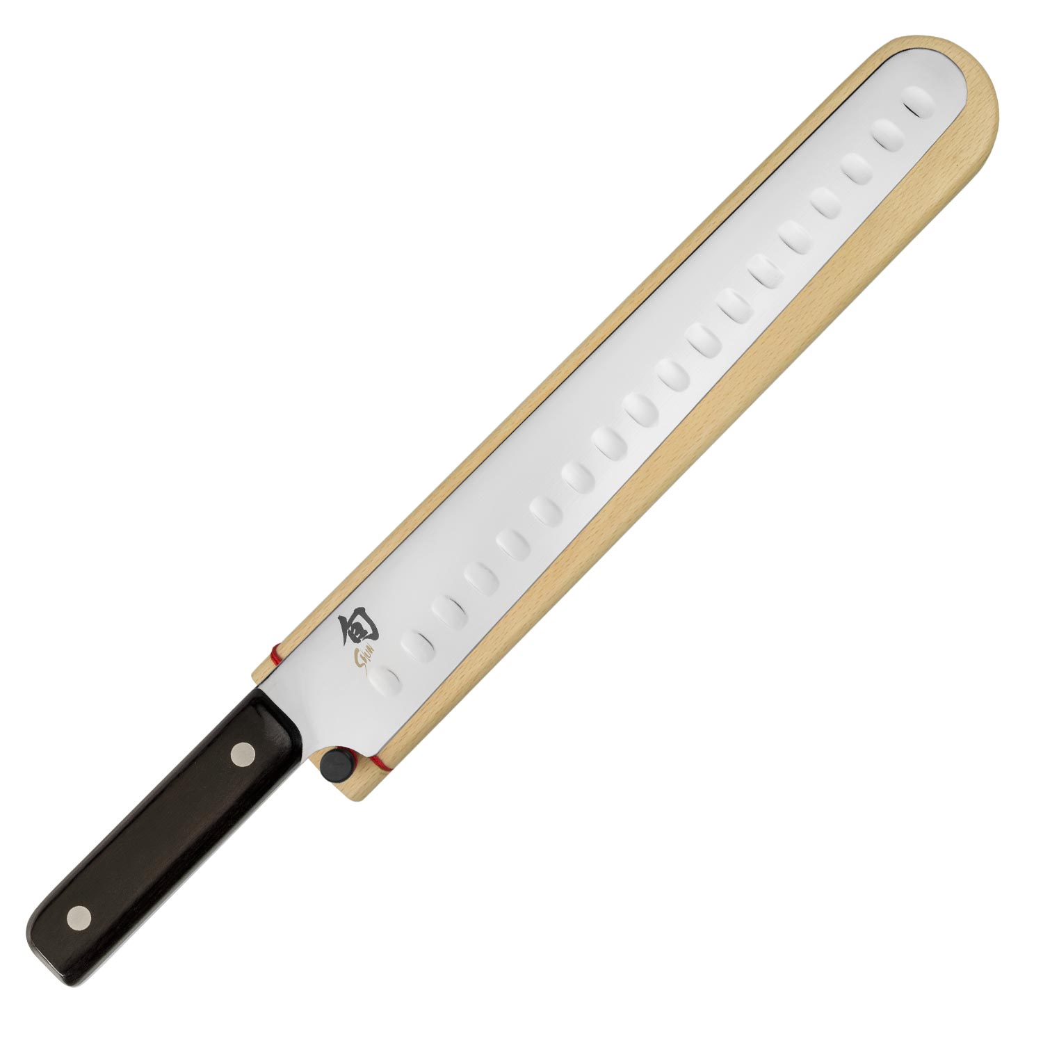 - For carving perfect slices of meat; includes a wooden saya (sheath)