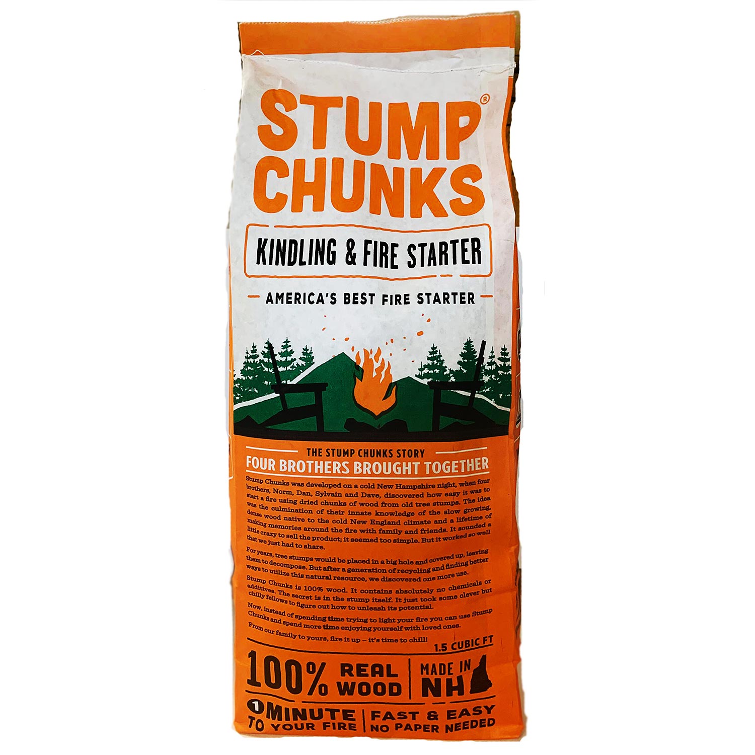 I have been using Stump Chunks for four years now and will never go back to paper. Stump Chunks gets my charcoal lit faster for a quicker grilling time, my fire pit going quicker for a more relaxing time, my yearly bonfire going better for more party time.