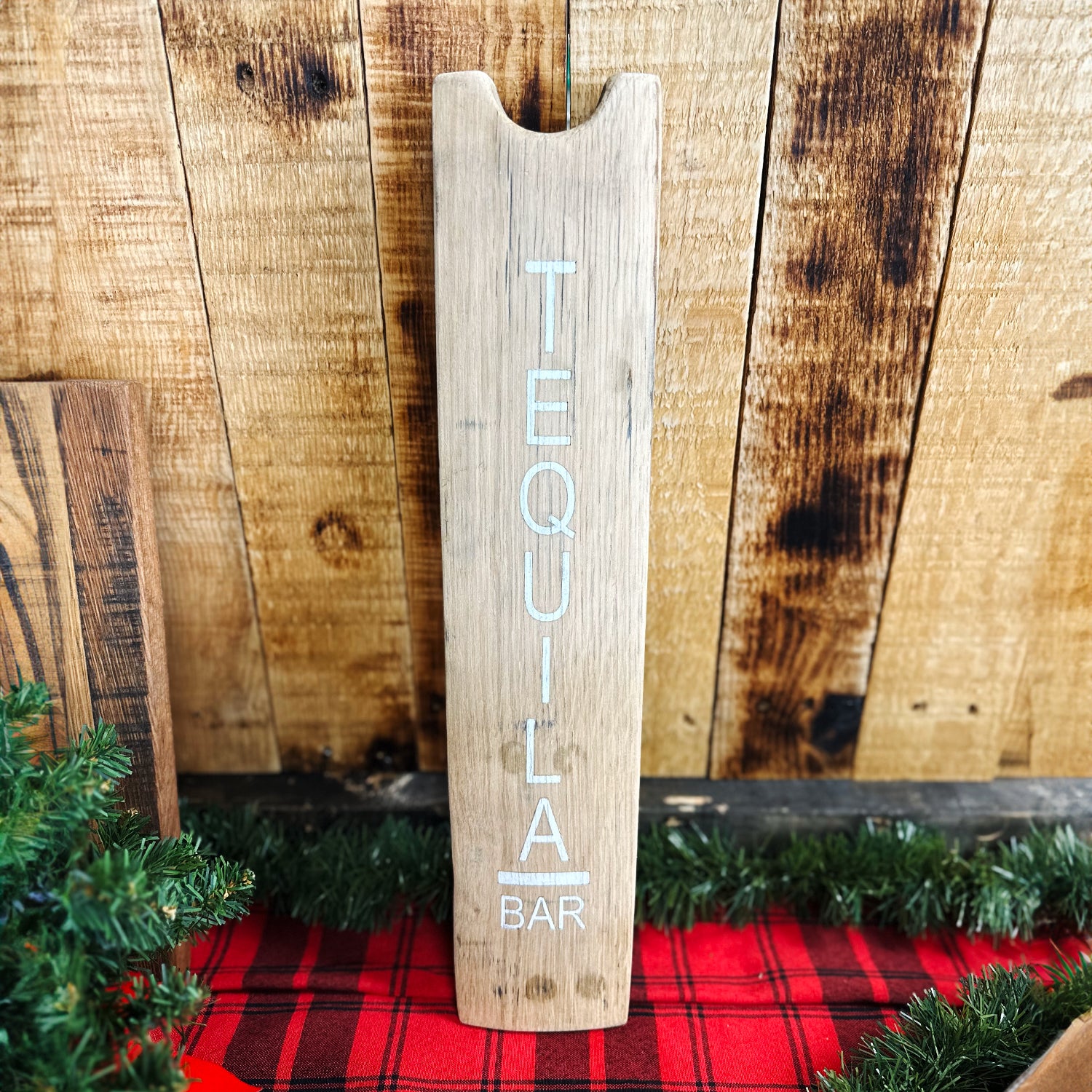 Add a touch of rustic charm to your tequila bar or home decor with our Tequila Bar Wall Art - Half Stave. Each stave is handcrafted from reclaimed wine barrels, giving it a unique and one-of-a-kind appearance. The wood is naturally weathered and distressed, adding to its rustic charm. The stave is painted with the words "Tequila Bar" in stylish lettering, making it the perfect addition to any tequila lover's home.