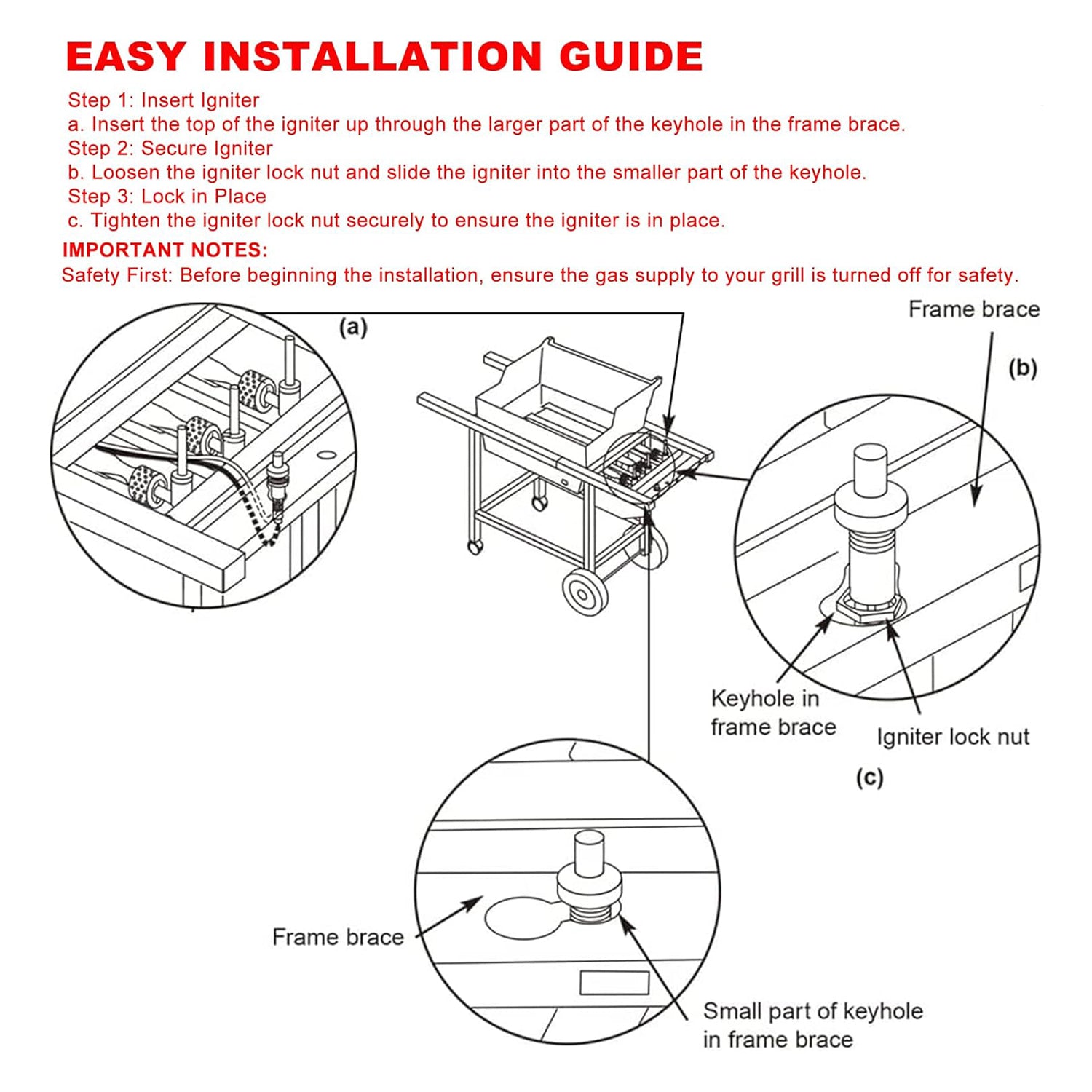 CONVENIENT PUSH-BUTTON IGNITION: Featuring a user-friendly push-button igniter, the kit includes a gas-catcher ignition chamber, wiring, hardware, and detailed instructions for easy installation, making it convenient for users to enjoy hassle-free grilling.