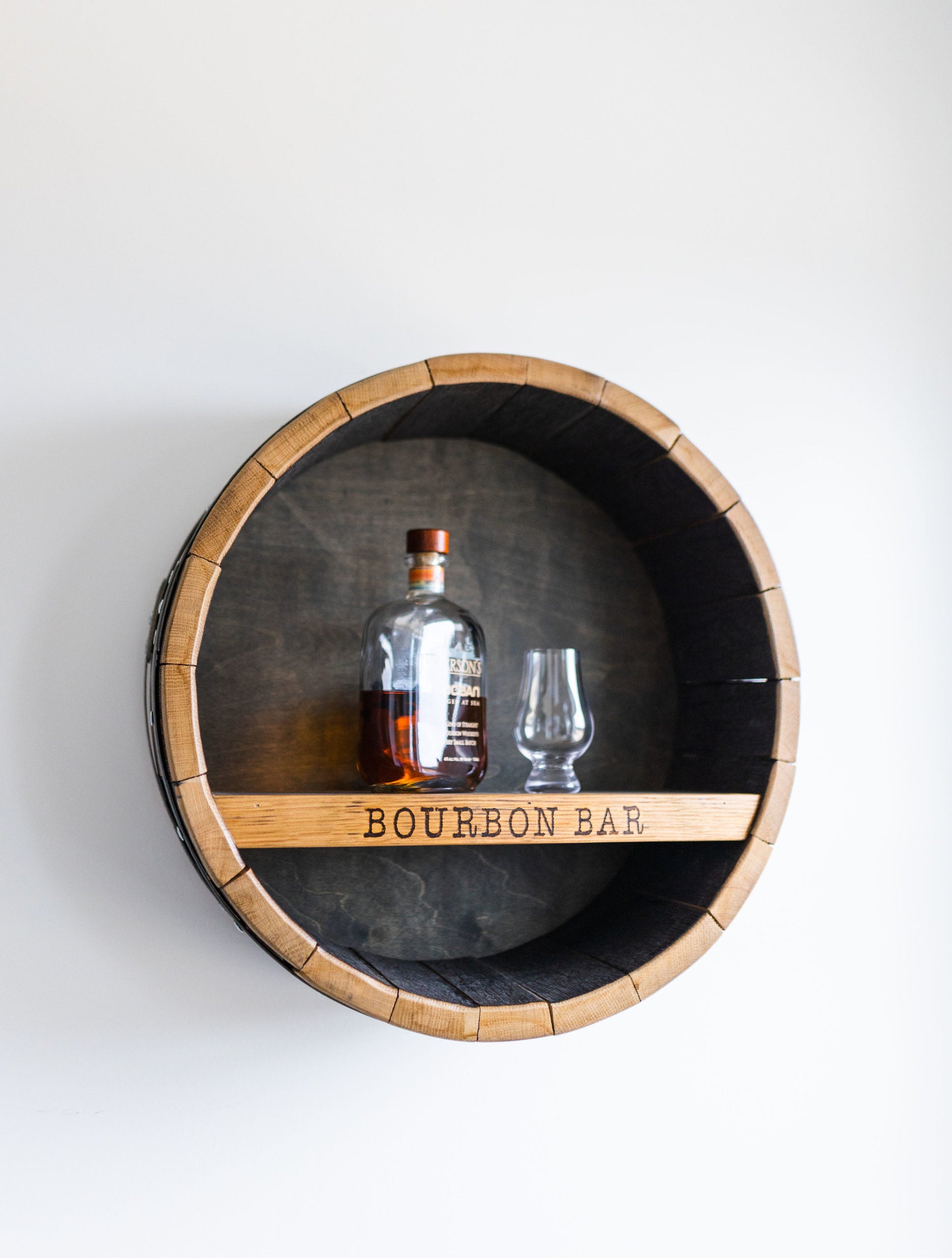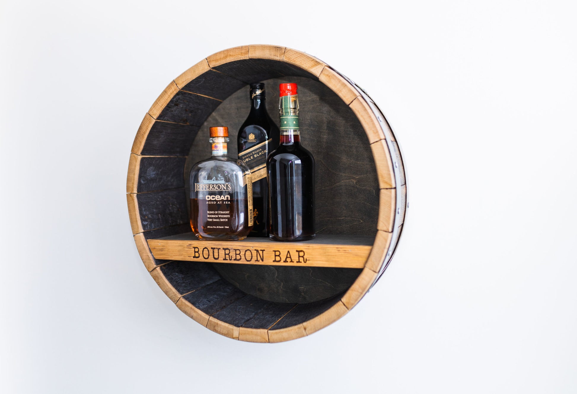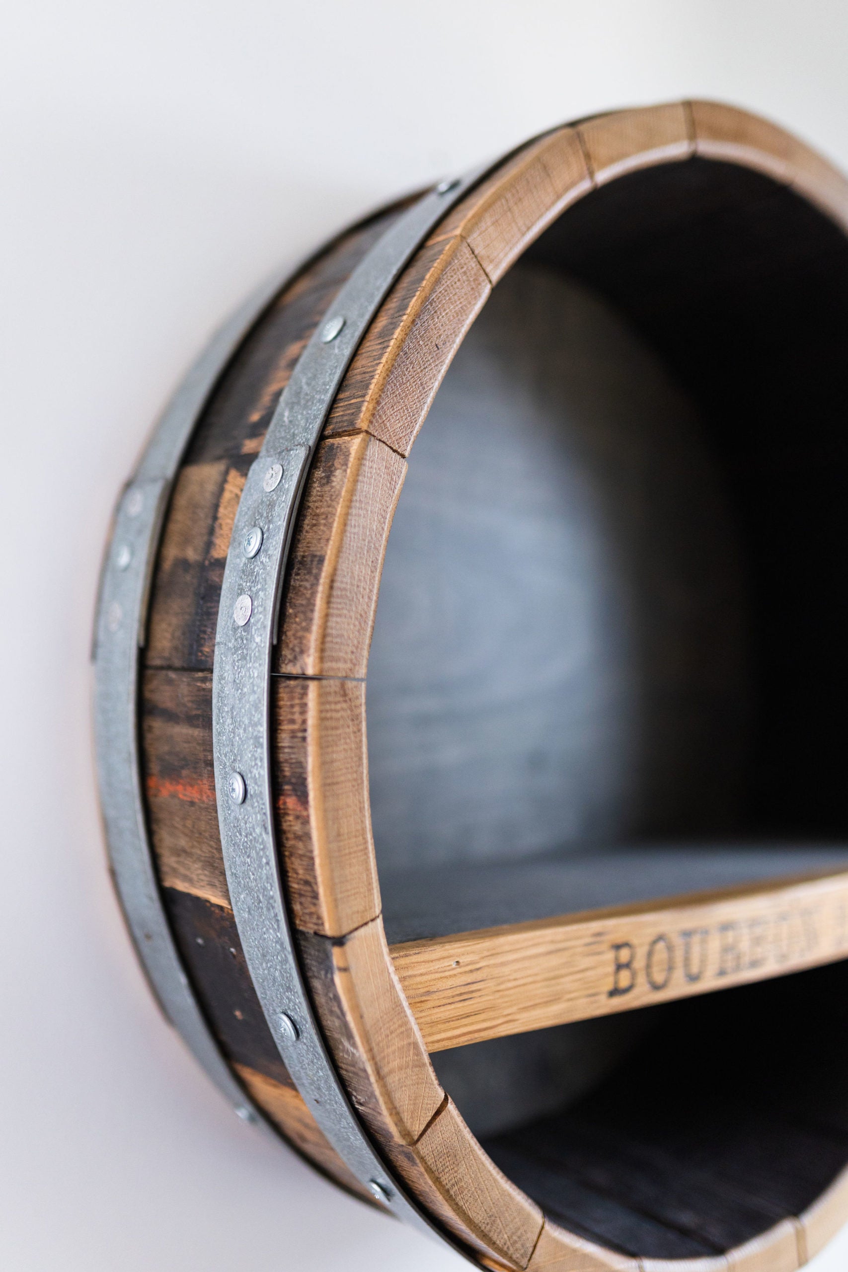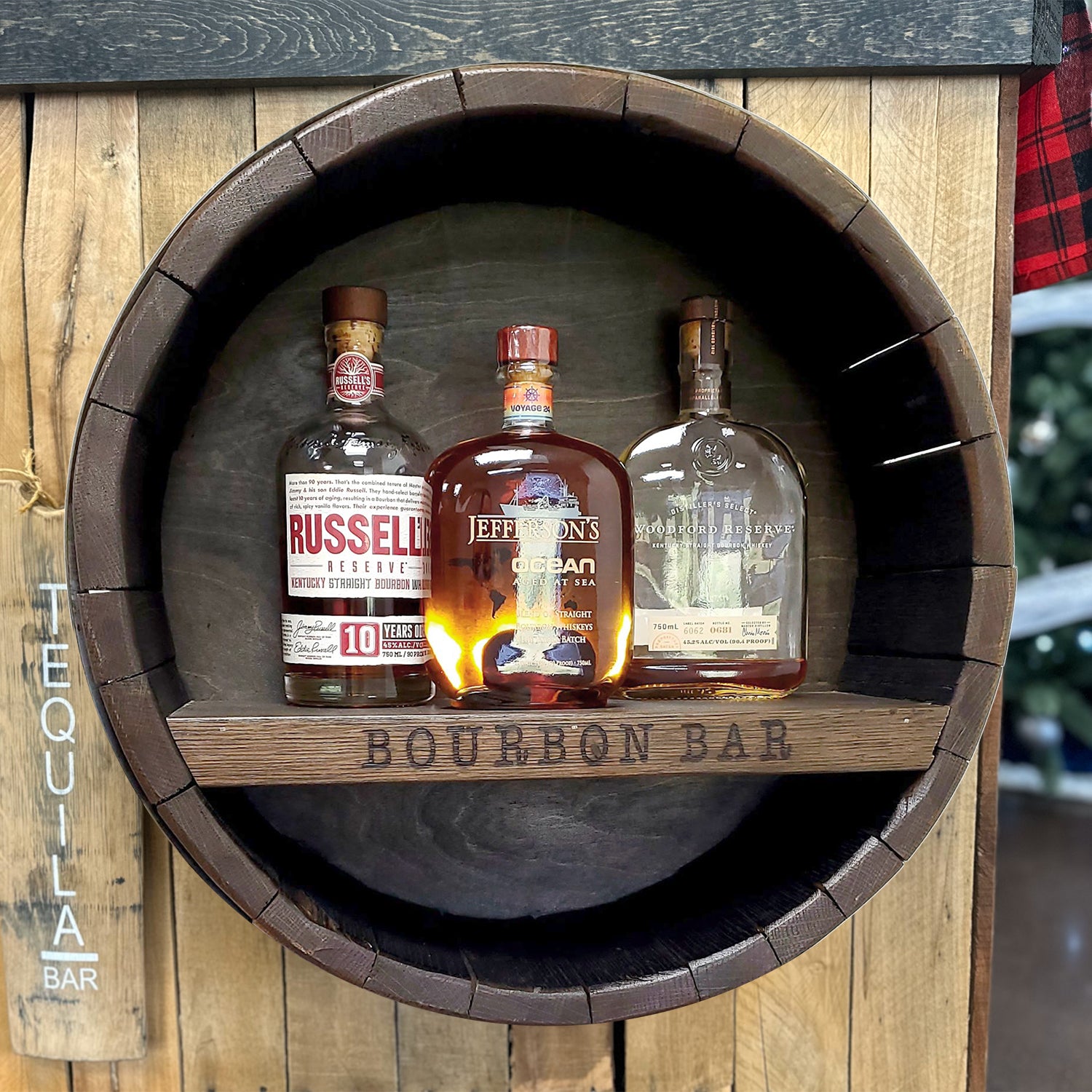 Whiskey Barrel Shelf Wall Art Display (Bourbon Bar)