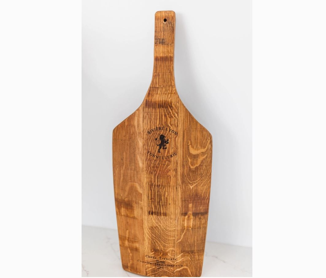 Elevate your next charcuterie board or cheese spread with our stunning Wine Barrel Cheese Paddle. Handcrafted from reclaimed wine barrel staves, each paddle is a unique work of art with its own natural grain and coloration. The durable wood surface is perfect for displaying your favorite cheeses, meats, fruits, and nuts, and the paddle's ergonomic handle makes it easy to pass around the table.