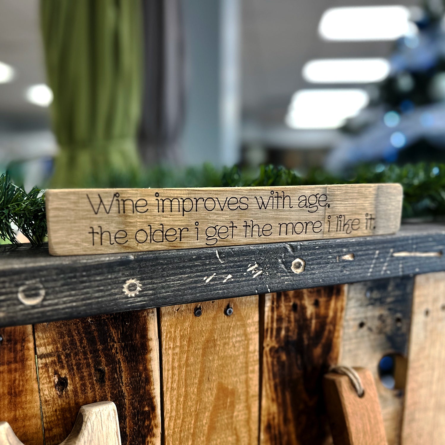 Add a touch of humor and wine love to your home with our Wine Quotes Shelf Wall Art. Laser-etched onto reclaimed wine barrel staves, each piece is a unique and one-of-a-kind work of art. The natural grain and coloration of the wood add to its rustic charm, and the clever and funny wine quotes are sure to bring a smile to your face and the faces of your guests.